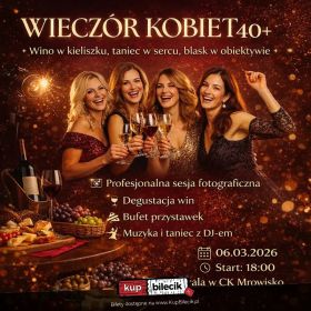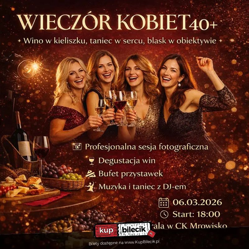 bilety: Wino w kieliszku, taniec w sercu, blask w obiektywie! Zapraszamy na wyjątkowy Wieczór Kobiet 40+ - pełen dobrej energii, kobiecej atmosfery i przyjemności, na które naprawdę zasługujesz. W programie: Dancing artyści: Różni artyściZapraszamy na niezwykły wieczór pełen tańca, uśmiechu i najpiękniejszych przebojów z lat 70’s, 80’s i 90’s! To idealna okazja, aby spędzić czas w świetnej atmosferze, rozruszać biodra na parkiecie i przypomnieć sobie największe taneczne hity minionych dekad. Bilety do nabycia na: KupBilecik.pl |